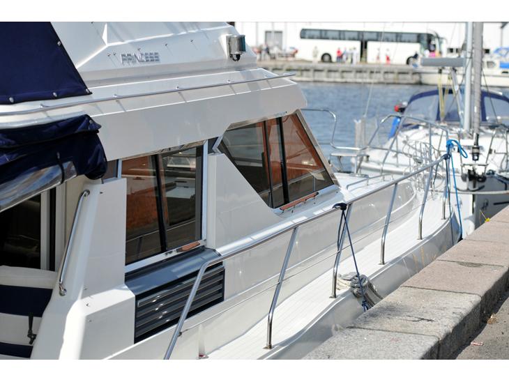 Princess 45 1988. Sofa arrangement fra en Sunseeker72, hvis ejer foretrak et stort køkken.