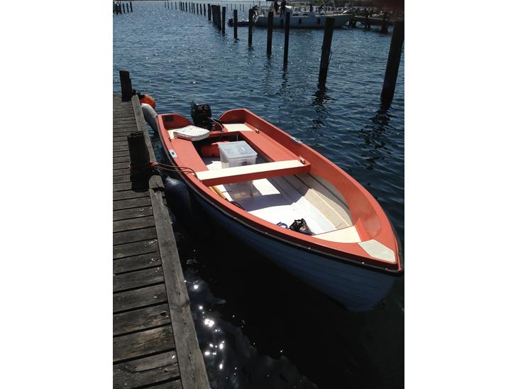 Båden er liggende på en Brenderup trailer. Den er lige gjort klar til syn og omregistrering.