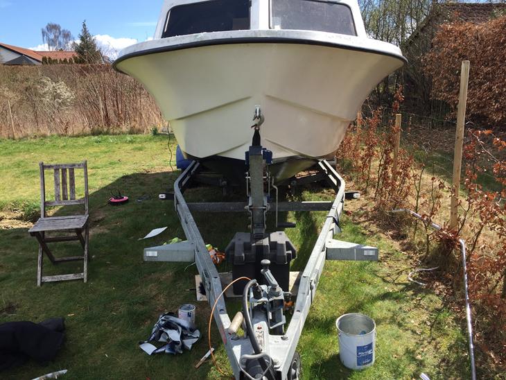 Jeg købte den sidste forår 2015 hvor den stod til salg uden motor og uden trailer, den stod som en 17 fods åbenkabine og de sage det var en Santa. Men efter den var kommet hjem