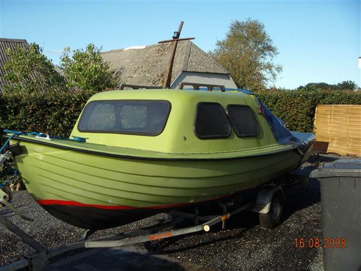 En dejlig båd til en hyggetur på fjorden, enten bare for at sejle, eller for at fiske lidt, båden har en lille overbygning sådan at 2-3 persoer kan komme i ly for evt regn og blæst.