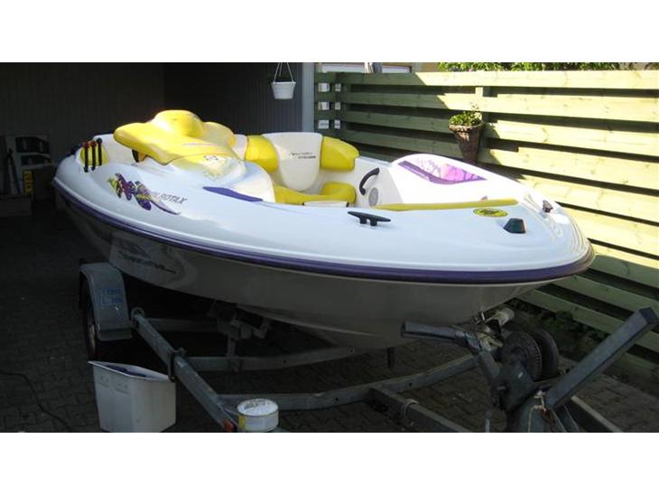 Jeg har lige købt den, med 2stk dårlige trækaksler og et dårligt svinghjul, fik så skiftet det, og fik en sejltur på 3timer den 31/5-09, inden den ene motor stod af. og har så fundet ud af pejlstangs lejet er gået nede ved krumtappen, så den må lige have et par nye stempler og krumtap, så køre den igen. men jeg skal lige sige at den er vildt hurtig, sælger sagde godt nok at den træk rimelig vildt, men jeg fik mig sku noget af en overraskelse, første gang jeg var ude i den, man bliver presset godt tilbage i sædet, alt i alt den bedste båd jeg har sejlet i, tager virkelig også bølgerne rigtig godt. så jeg fortryder ikke mit køb selvom motoren stod af, så er der bare noget at glæde sig til igen. hvis jeg skal komme med en ulempe så er det når man står på wakeboard bagefter den, kan det godt smage lidt af totakts olie, men what the fuck.