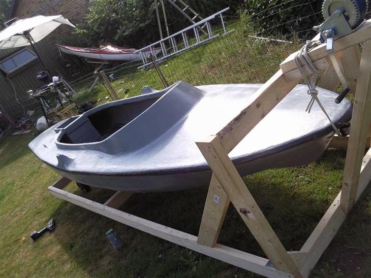 båden er 14 fod, eller 4,15m lang. og den er 1,18 på det bredeste sted. den har en højde på 60cm og vejer ca, 70kg
